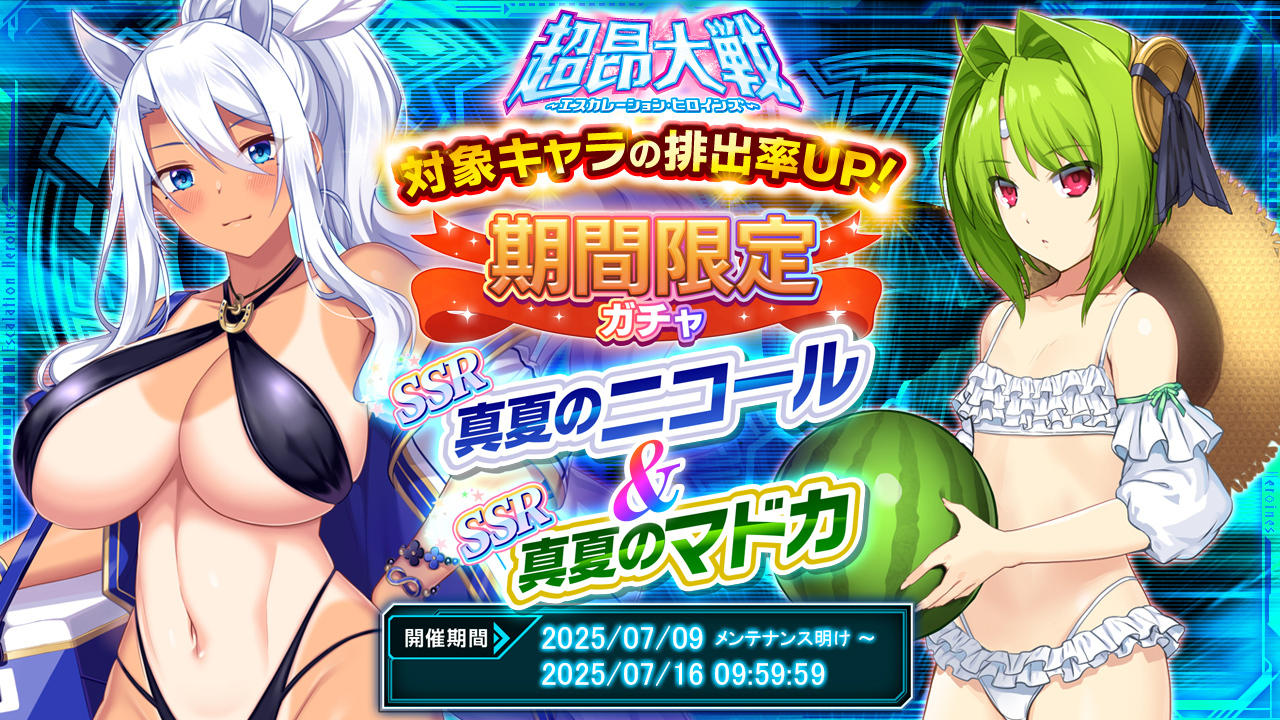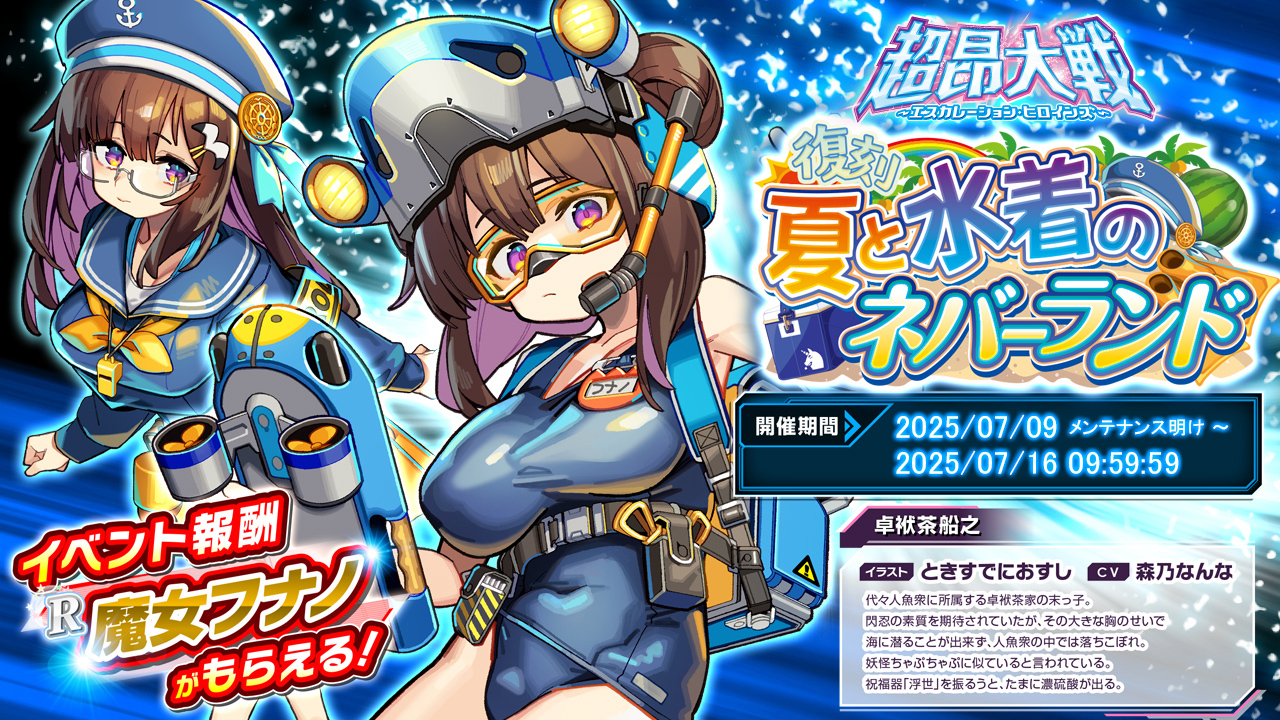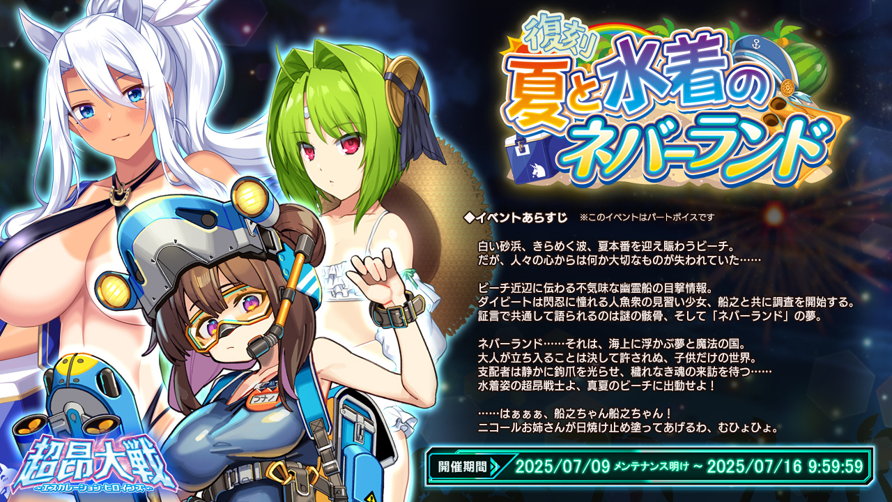 アリスソフト『超昂大戦 エスカレーションヒロインズ』は現在、復刻水着イベント『夏と水着のネバーランド』が開催中。