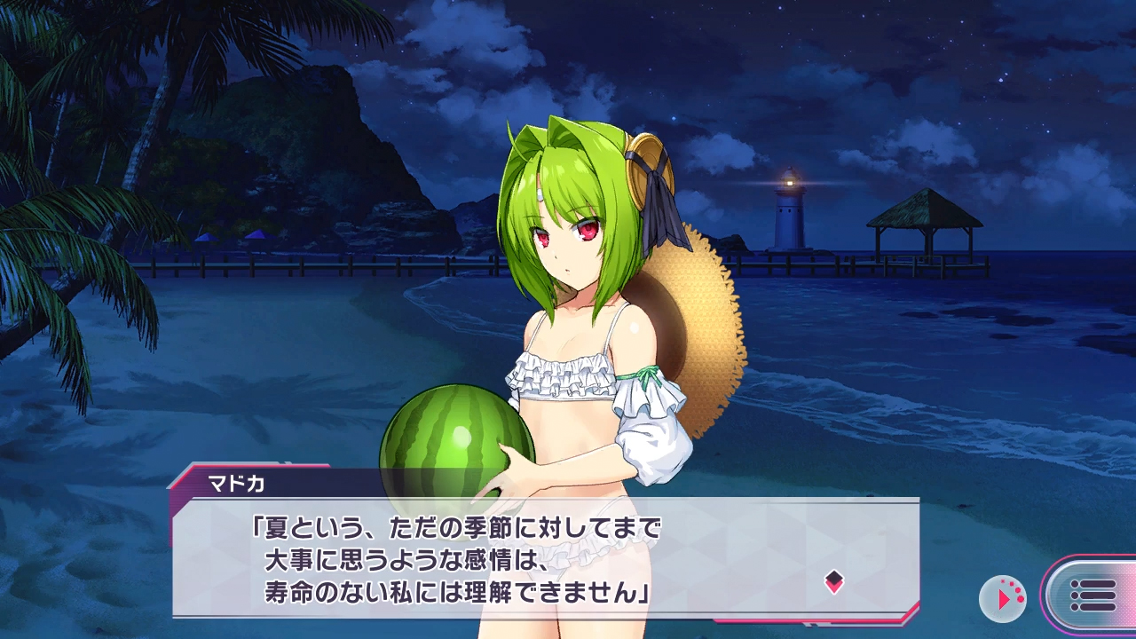 水着の良し悪しがアンドロイドには分からないと思っていたマドカであったが、この水着は好みのようだ。