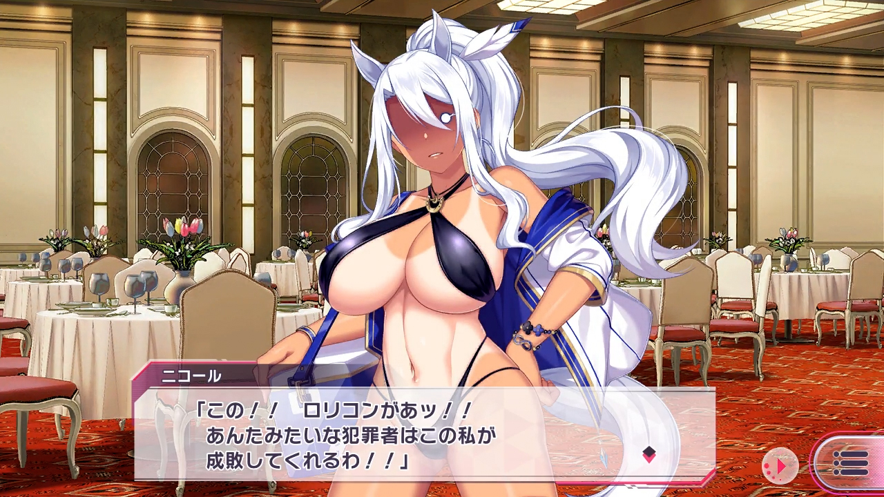 ▲ロリコンは許せない!! とキレるニコール。お前がそれを言うか!! とその場にいる全員とプレイヤーも突っ込みたくなるが、何はともあれロリコン変態同士のガチバトルが始まる