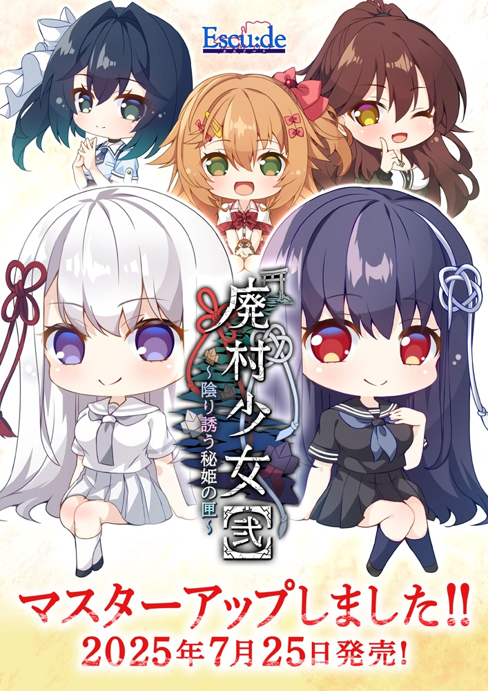 エスクードの人気作続編『廃村少女[弐]~陰り誘う秘姫の匣~』を速報チェック!! 山奥の廃村を舞台に5人の美少女たちによる酒池肉林の淫靡な宴が幕を開ける──