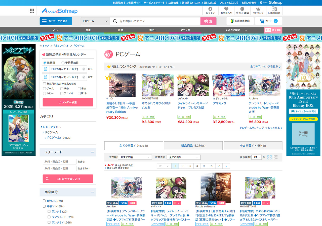 PCゲーム 新品商品・月間・予約商品(集計期間:6月18日~7月17日)