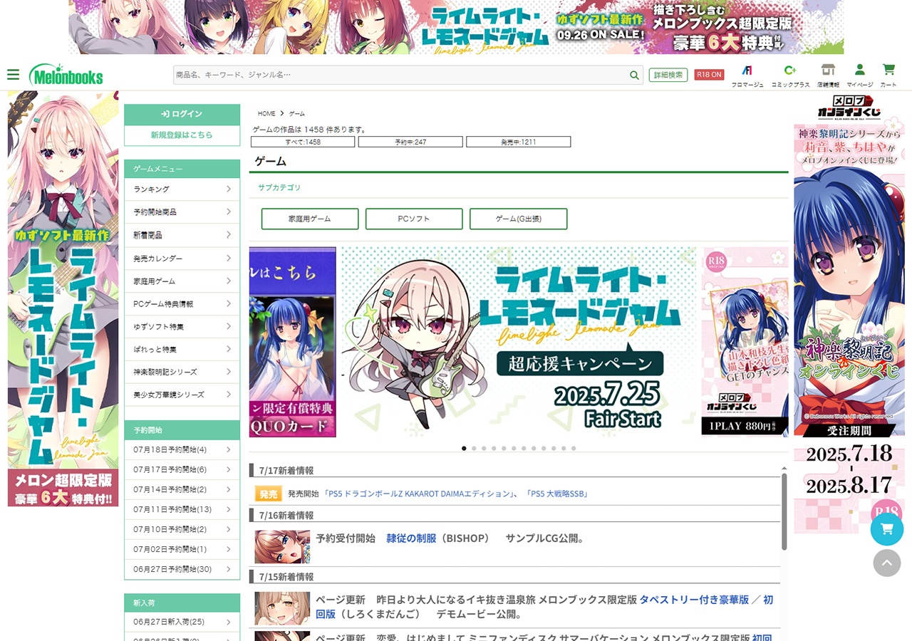 月間ゲーム予約ランキング(全て:一般向け&成年向け)7月19日調べ)