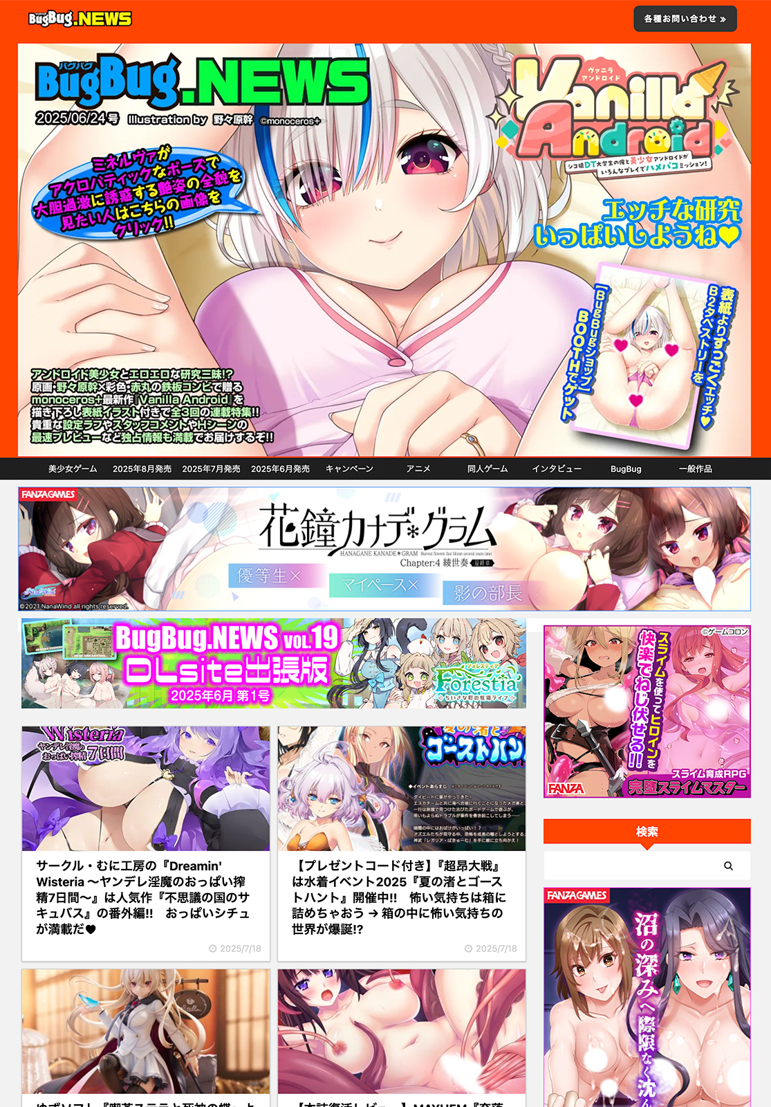 AnimeFestaのプレミアムなアニメ作品が人気躍進!! Purple software最新作は物語にもエロにも期待大 夏に向けてどんな作品が発売されるのか、自分の好きなクリエイターの作品は出るのか ... 『ギャルズフィクション』が表紙のBugBug8月号発売!! 昨年発売の作品にも【激推しレビュー】で再び注目が!? 7月頭だというのまるで真夏のような暑さでバテそうな日々、最近話題の美少女ゲーム情報をチ ... 様々なブランドの最新ニュースはBugBug.NEWSを見ればだいたい載ってる!? 蒸し暑かった6月もいよいよ終わり、気分も昂ぶる夏に向けて美少女ゲームでもHOTな新作情報が次々と発表。最近の旬な話題を ... 夏休み商戦を目の前にもうすぐ発売される期待作にも注目が集まる!! 6月の「月末エロゲの日」もいよいよ今週。豊かなエロゲーライフのための計画はバッチリかな? 忙しい人も最近の注目記事をまとめてチェックで ... 『野々村病院の人々リメイク』『アマカノ3』など嬉しい速報ニュースにみんな大興奮!! 気温も湿度も上がってきてひと足早い夏気分な今日このごろ。暑さでバテてだらけがちだが、そんな時にはここ一週間で注目度の ... BugBug本誌の告知記事が人気TOPに!! おっぱいが大きいヌキゲーも相変わらず注目度激高♥ いつも夏には様々なイベントが控えていることもあって新作エロゲの期待作を多数登場予定。そんななかオススメの ...