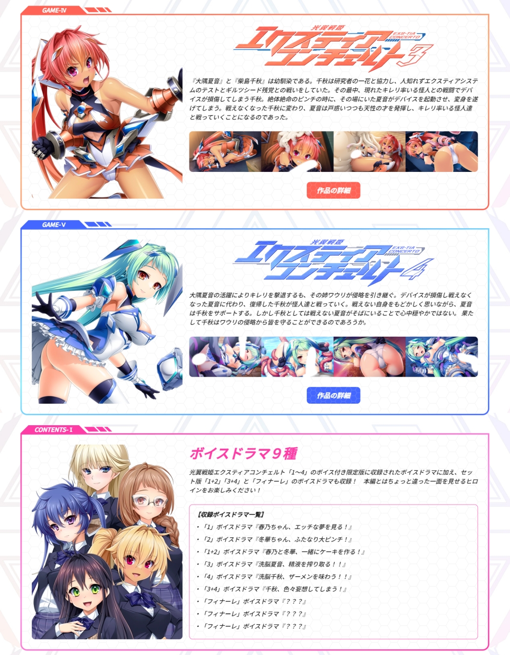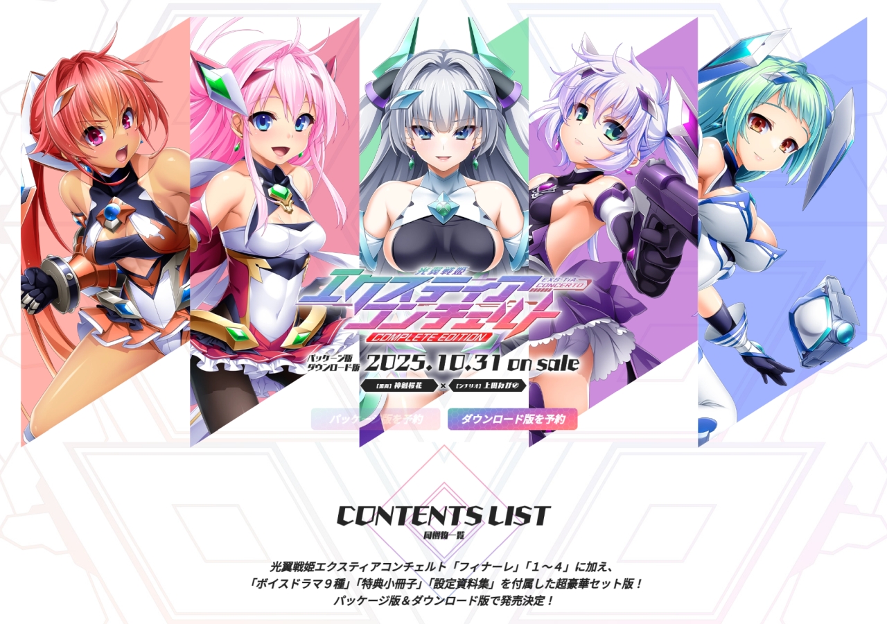 さらにシリーズ全作にボイスドラマ、特典小冊子に設定資料集と、『光翼戦姫エクスティアコンチェルト』シリーズの全てがセットになった『コンプリートエディション』も同時発売。まだシリーズを未プレイの人はもちろん、ヒロピンエロスの全てを味わい尽くしたい人も要チェックだ!!