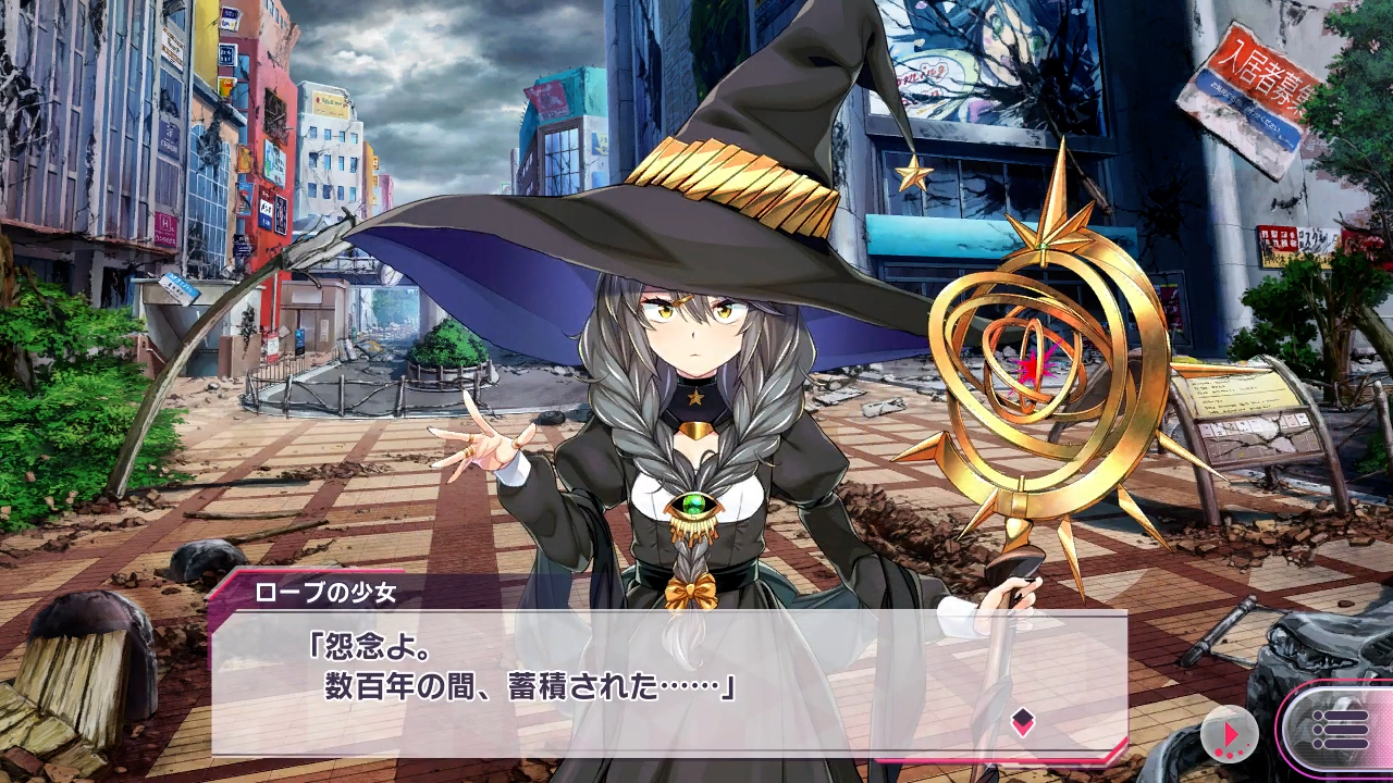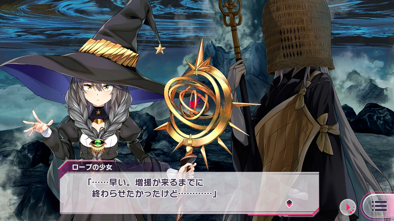 ▲先に異変を調査していた魔女たちと合流するも、島では謎の虚無僧、そして街で石を破壊したローブの少女が封印を解こうとしていた