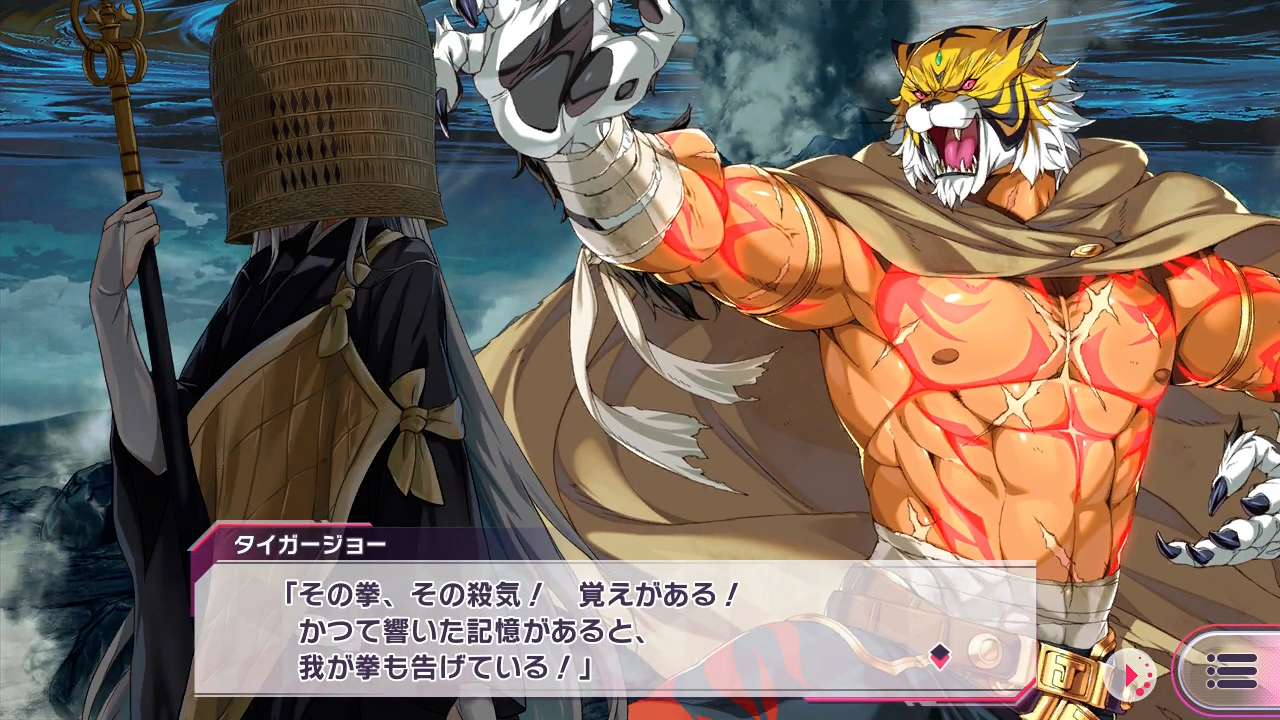 ▲九尾狐の復活を阻止しようとするタイガージョーと謎の虚無僧の衝突!! かつて別の姿で拳を交えたことがある二人は、すぐに互いの正体に気付く