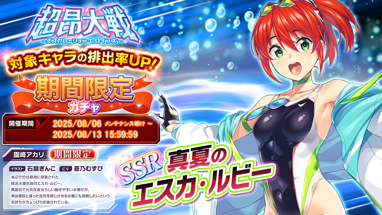 現在開催中のガチャは『真夏のエスカ・ルビー(SSR)』がピックアップ!!