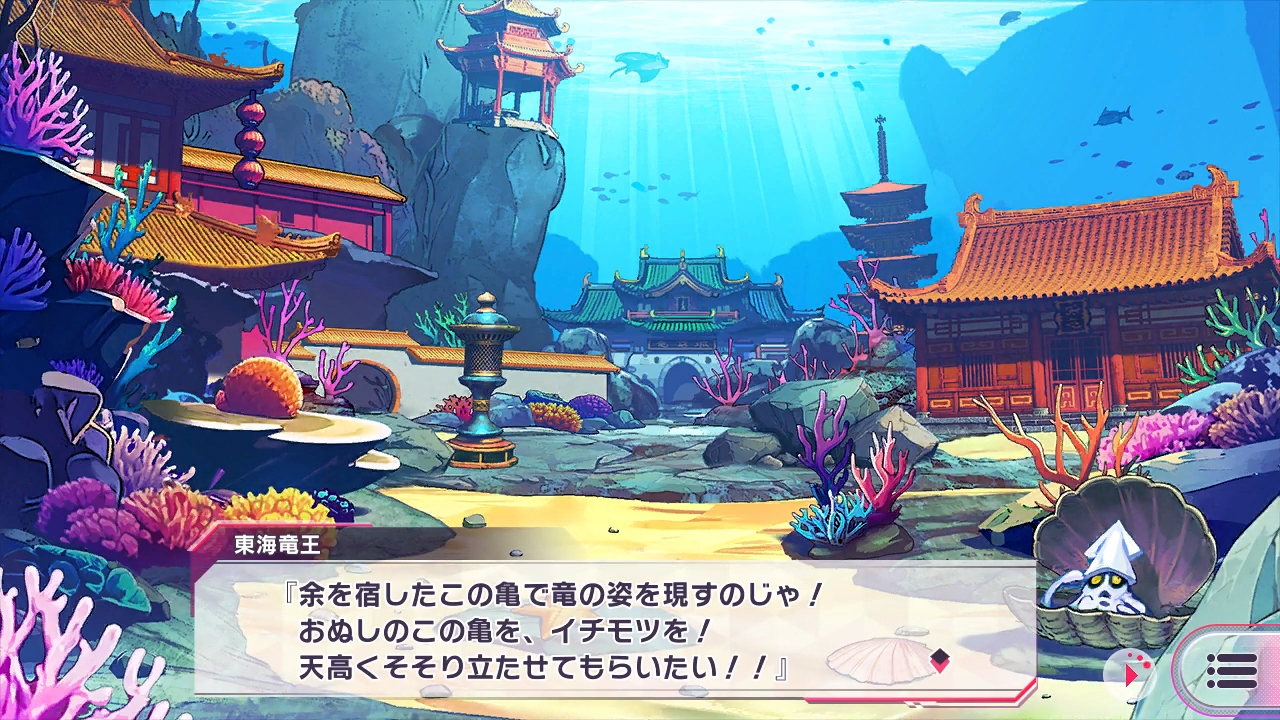 ▲突然、木箱からの接現力が急激に増大!? 煙が周囲を満たしたと思ったら「いじめられていた亀を助けた」ことで竜宮城へご招待!!