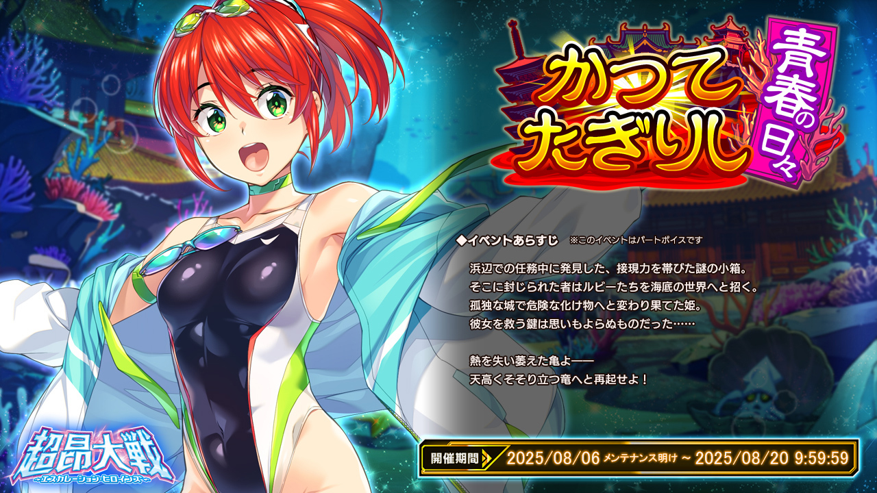 アリスソフト『超昂大戦 エスカレーションヒロインズ』は現在、水着イベント2025の第二弾となる『かつてたぎりし青春の日々』が開催中。水着イベントらしく海が舞台、新規水着キャラクターも登場して見た目も涼しげで華やか。しかし海は海でも、海の底!!