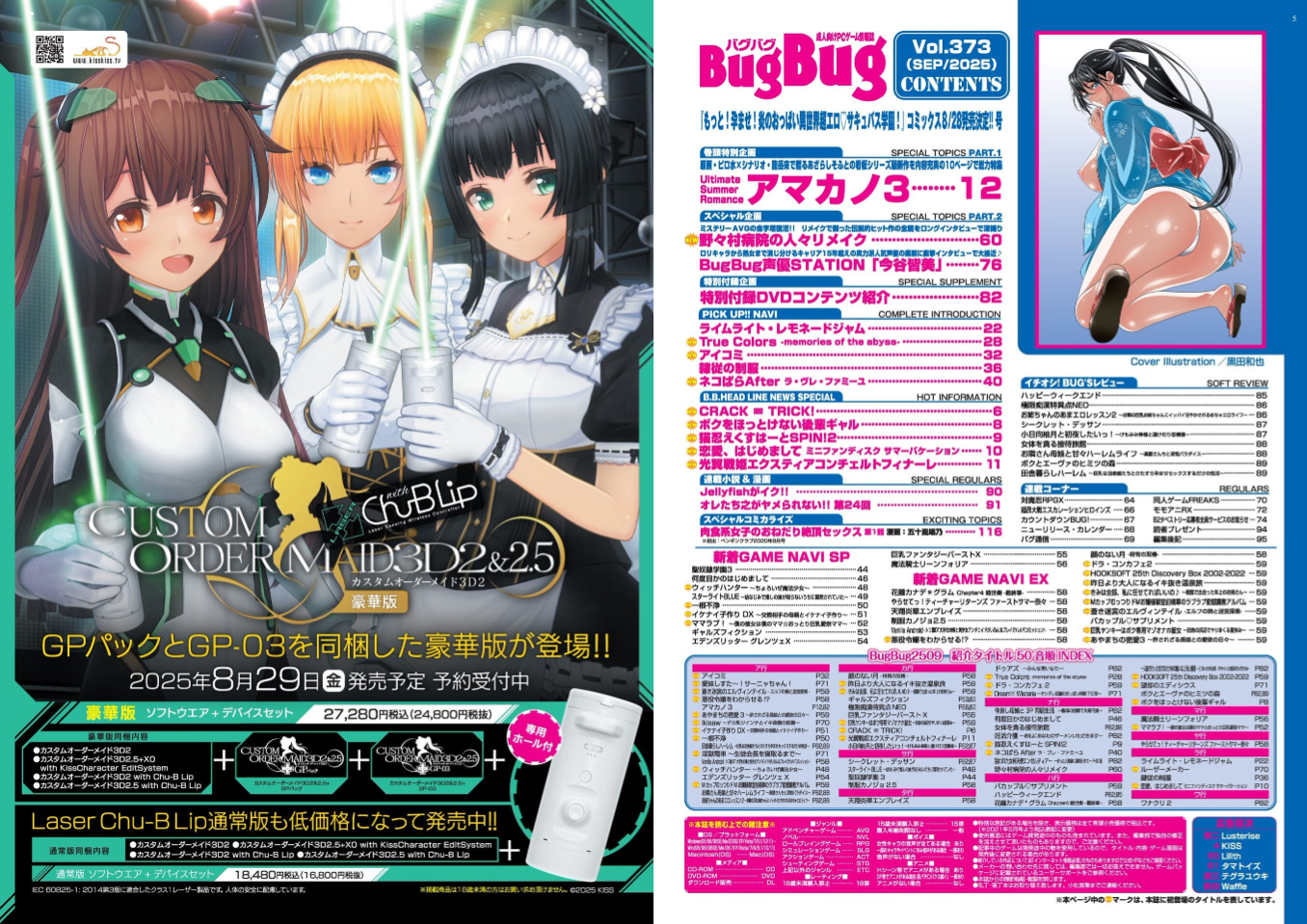 関連記事 話題の超大作からSSS級ヒロインが大胆過激に総出演!! 肌色満載な美少女ゲームフェスティバルで昇天しよう 『BugBug』9月号は2日と3日が土日で出版流通がお休みのため、いつもより2日も早く本日発売 ... 販売サイトの試し読みサンプルでお宝情報が無料でチェックできちゃう!? BugBug8月号の電子書籍版は本日発売!! 電子書籍版は付録のDVDが付いてないけど、税込1,100円と紙の本より安価でお得にな ... 注目の最新美少女ゲーム情報をスマホやタブレットで手軽にチェック☆ BugBug7月号の電子書籍版は本日発売!! 電子書籍版には付録のDVDは付いてないけど、税込1,100円と紙の本より安価でお得。電子 ... パソコンやスマートテレビの大画面で大判リニューアルした誌面を迫力満点で味わうのもアリ♪ BugBug6月号の電子書籍版は、毎月10日の本日発売!! 紙版は4月号よりA4サイズに大っきくリニューアルして ... コスパ抜群な電子書籍でお手軽に最新美少女ゲーム情報を満喫しよう BugBug5月号の電子書籍版は本日発売!! 紙版は先月の4月号よりA4サイズに大っきくリニューアルして大好評!! 営業部に売れ行きを確 ... 大判化して1ページ当たりの情報量も増加!! いつでもどこでも最新美少女ゲーム情報を楽しんじゃおう♪ BugBug4月号の電子書籍版は本日配信!! 紙版はA4サイズに大っきくリニューアルして1ページに情 ... スマホやタブレットでいつでもどこでもお手軽に最新美少女ゲーム情報をGET!! BugBug3月号の電子書籍版は本日配信!! 電子書籍版には付録のDVDが付いてないけど、かわりに税込1,100円と紙の本 ...