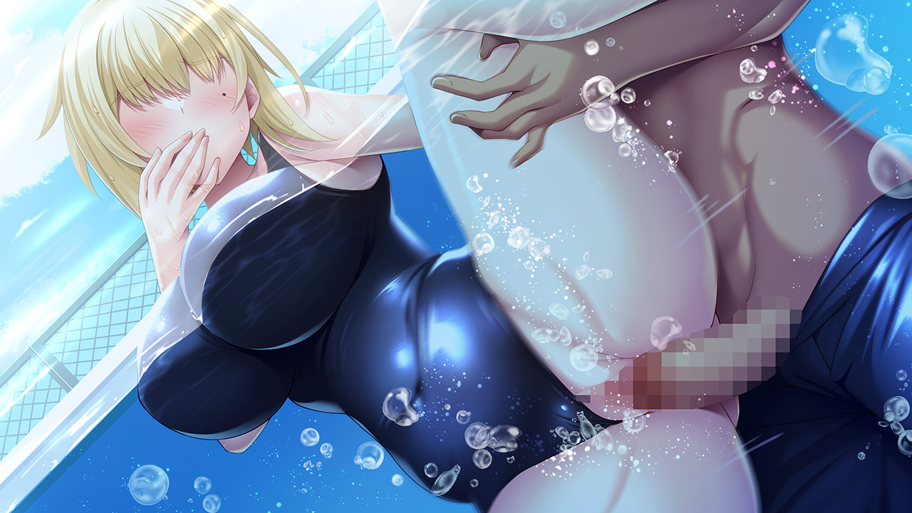 ▲自宅はもちろん、通学中の電車や学園内でもHな誘惑を仕掛けてくるクルル。さすがにプールの中だと人目が気になるが、バレないようにこっそりイカセちゃおう♪
