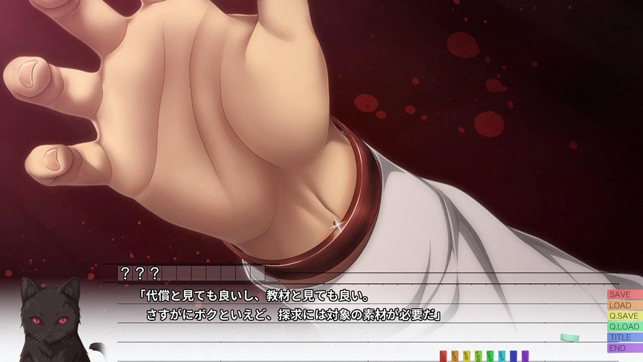 何気なく腕輪をはめてみると手首にフィットし外れなくなり…焦る主人公に追い打ちをかけるように黒猫が目の前のテーブルの上に登場。しかも話しかけてきたのです!!