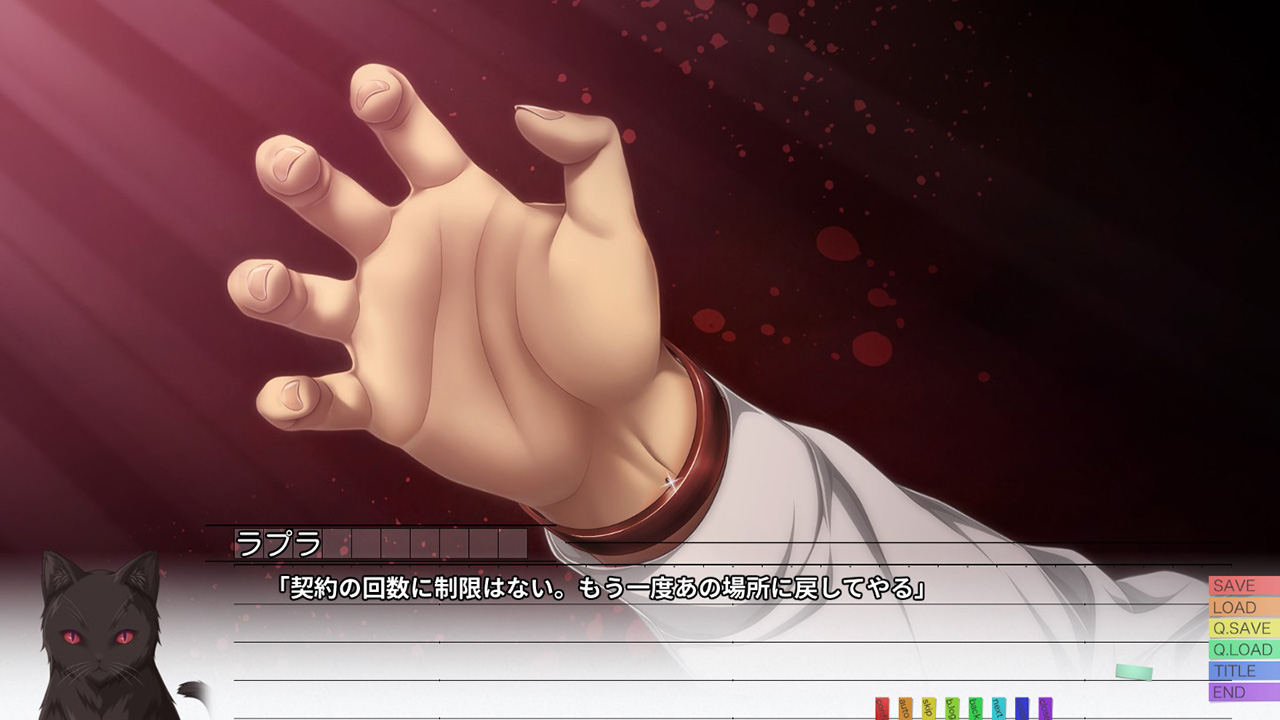 その契約を実行するため、外れなくなっていた腕輪から伸びた針により血を抜かれていく主人公。その血から彼の人生を産まれてきたときから把握し始めたラプラは、最も輝いていた過去に主人公を送り込んで…。