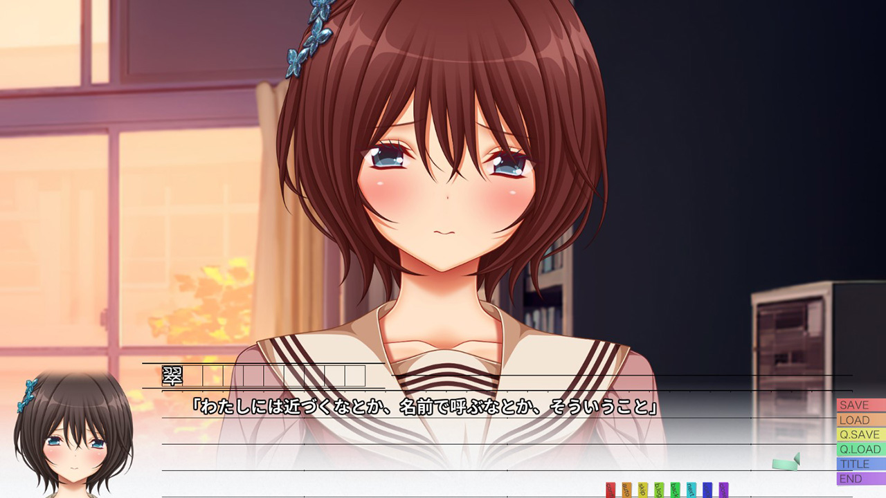 その日の別れの挨拶時、「私のことを忘れないで」と言ってきた翠。家に帰ろうと背を向けていた主人公が振り向くともうそこに彼女はいなかったのですが、ここからがまさかの展開。この後、蝶舞翠という存在が消えてしまっていたのです。主人公を除く誰の記憶からも。過去にいられる最終日にずっと探し回っても変わらず、混乱したまま未来へ戻るのでした。
