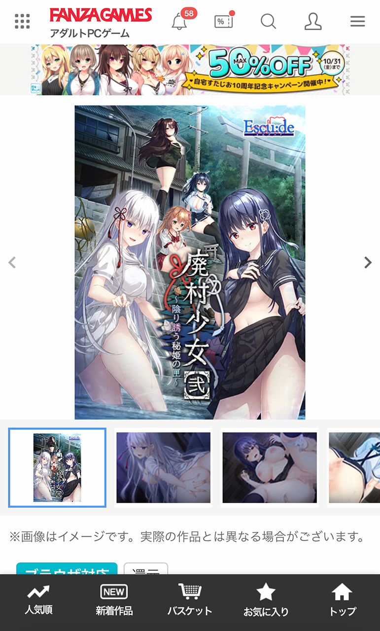 エスクード『廃村少女 外伝 ~嬌絡夢現~』のブラウザ版をiPhoneでプレイ!! ヒット作『廃村少女 ~妖し惑ひの籠の郷~』のサブヒロインたちと再び酒池肉林の饗宴へ…