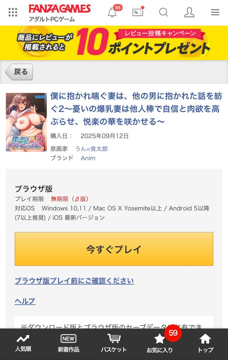 この傑作寝取らせゲームはFANZA GAMESのブラウザ版でプレイが可能だ。ダウンロード版と違ってPCやスマホ、タブレットなど様々なデバイスでプレイできる点が魅力。夫と一緒にトイレなどでこっそり妻の痴態を覗いちゃおう♪ 本記事では実際にiPhoneでプレイしたレポートと、ブラウザ版を購入からプレイするまでの流れを説明していくぞ!!