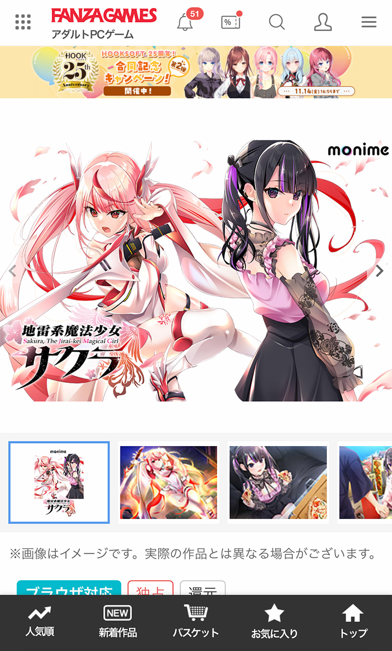 ブラウザ版を購入するため事前にFANZA GAMESのユーザー登録をしておくこと。後はクレジットカードを用意すれば準備は完了だ。実際に『地雷系魔法少女サクラ』を購入してみたぞ。