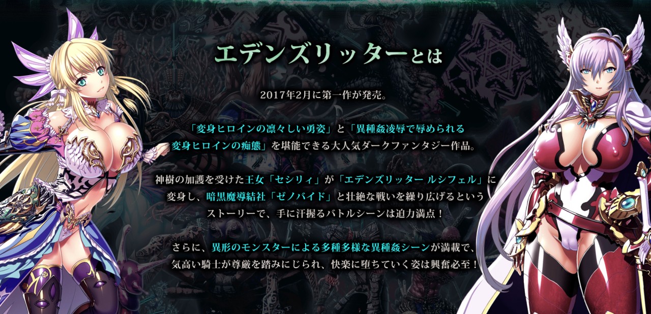 学園ものからファンタジーまでとにかくドスケベなソフトを手がけるWaffle。中でも熱いバトルと多種多様な異種姦で人気を博しているのが、ファンタジーな世界を舞台とした『エデンズリッター』シリーズだ。現在はソシャゲにも展開されている大人気シリーズだが、その物語は2017年にリリースされた作品から始まった。