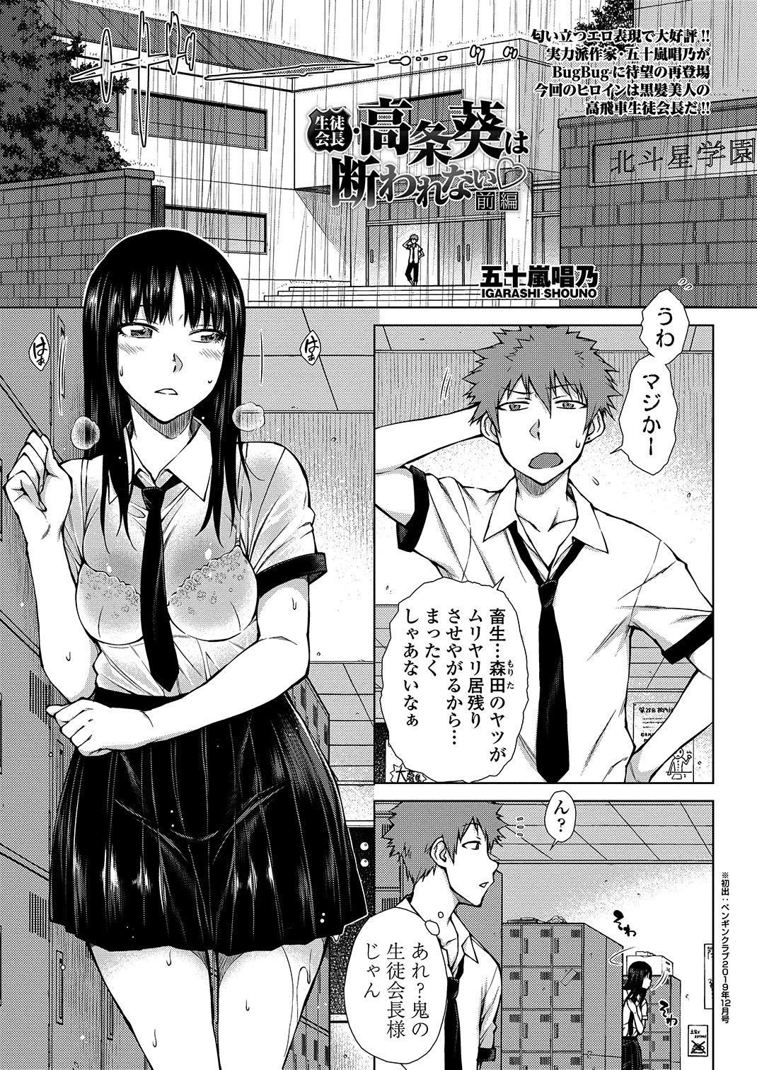 ▲匂い立つエロ表現が大好評な実力派作家・五十嵐唱乃氏が再登場。今回のヒロインは黒髪美人の高飛車生徒会長だ!!