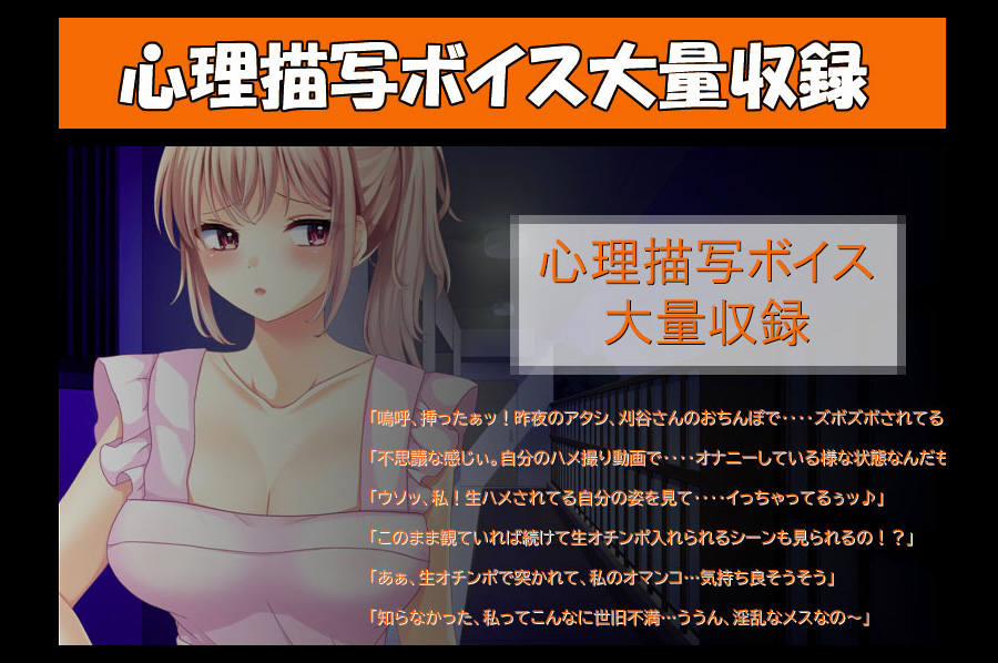 そんなことは露知らず、旦那のために料理スキルを向上させようと学園に足を運んでしまった結婚4年目の若妻・加賀あやね。やがて学園の実態を知るものの、旦那と別居中で欲求不満なカラダは拒むことができず…!? 見知らぬ男たちによりハメ堕とされちゃう、背徳感タップリな人妻エロスを堪能できる作品だぞ!!