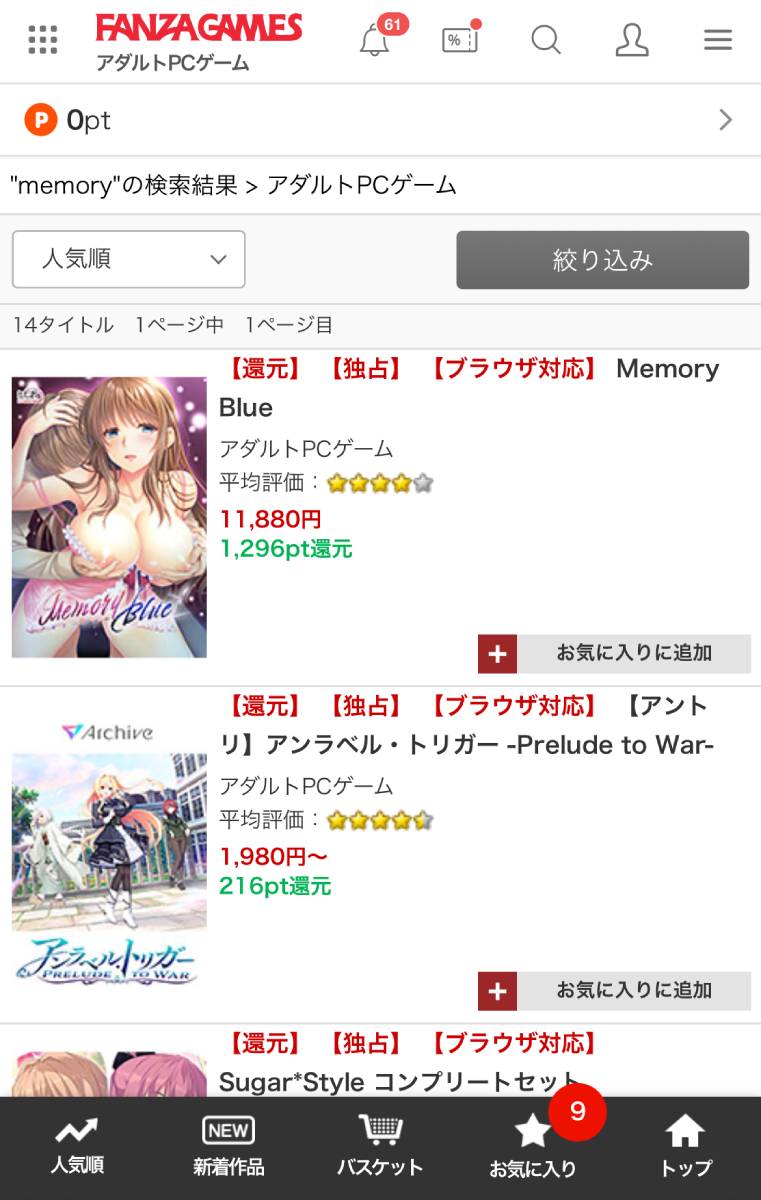 ▲「memory」で検索すると該当作品が見つかるぞ。もちろんタイトルを全て入力しても構わない