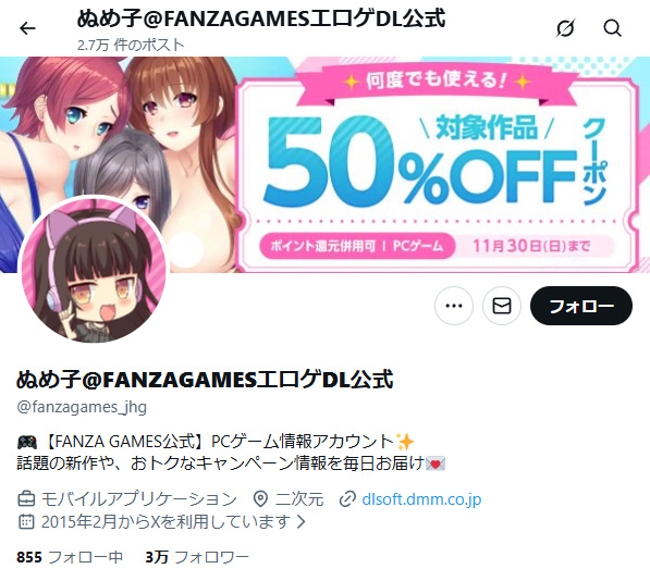 FANZA GAMES公式Xをフォローして最新情報をゲット!!