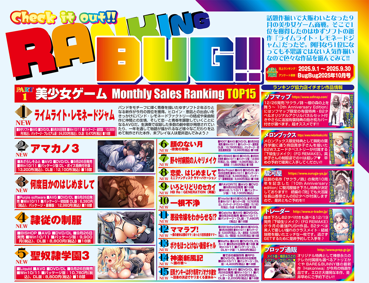 美少女ゲーム専門誌としての面目躍如!? ベスト10の6つをレビュー記事が独占!! BugBug.NEWS・10/18〜10/24の人気記事ランキング
