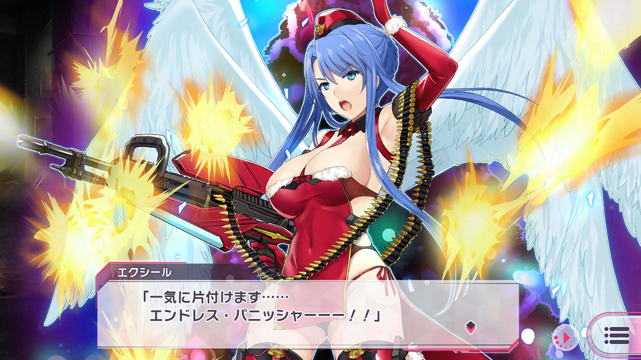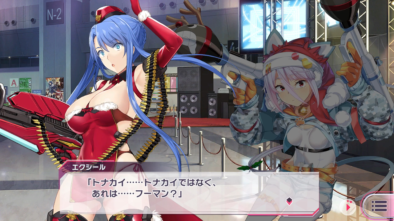 クリスマスでの任務に合わせて、軍装モチーフのセクシーなサンタ姿となったエクシール。