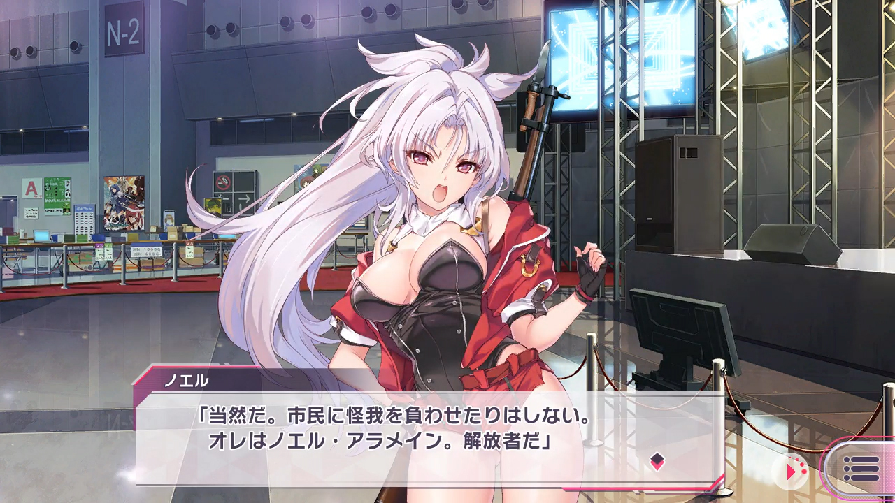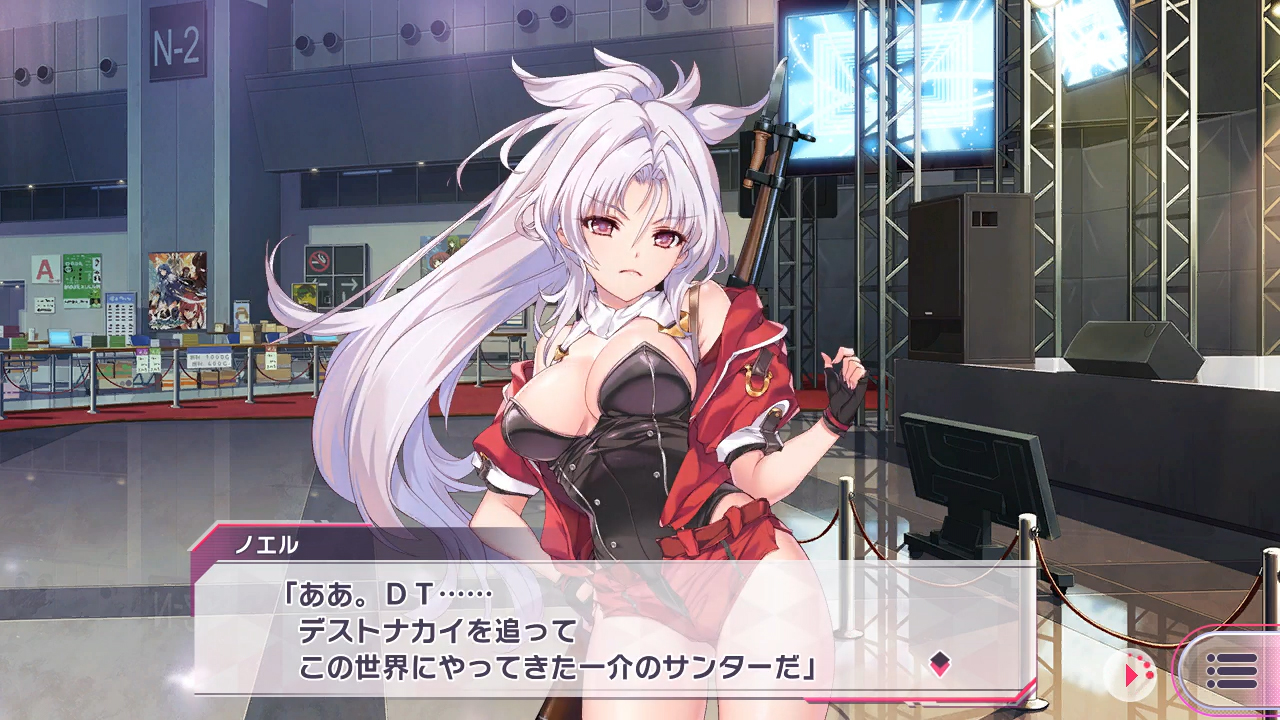 ▲彼女の名はノエル・アラメイン。解放者であり、DT…デストナカイを追ってこの世界にやってきた一介のサンターとのこと。うん、何言ってるのかよくわからない