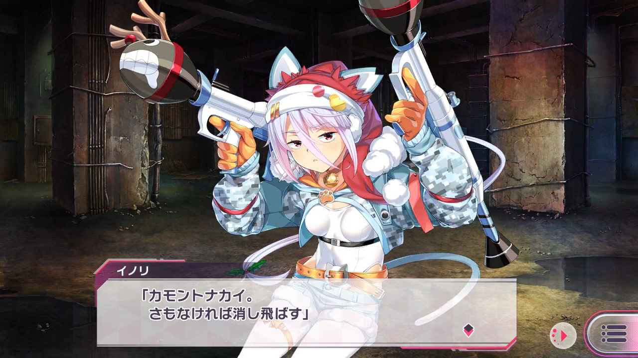 「悪鬼彷徨う聖夜の闇を……払うは月影。そしてこのグレネードランチャーだ!!! イノリちゃんクリスマスモードで見参!! パンツァーーーー!」
