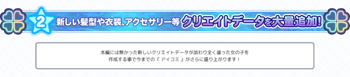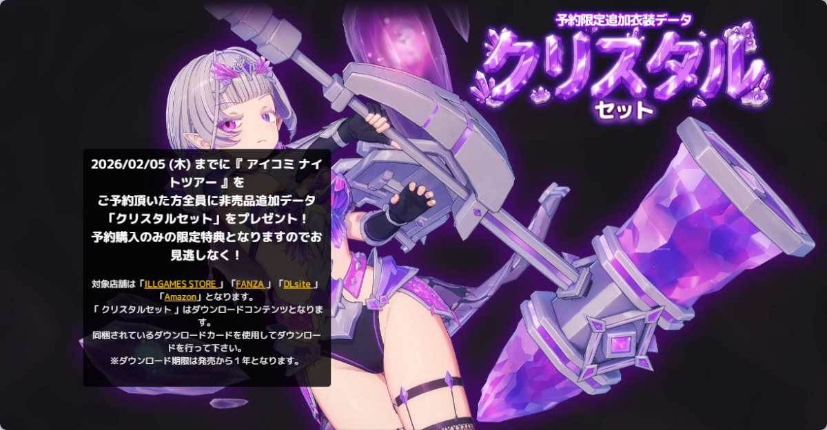 予約でしか手に入らない限定衣装クリスタルセットの特典にも要注目。なお本作はアペンドデータセットなので、プレイするには『アイコミ』本編が必要なので注意しよう。
