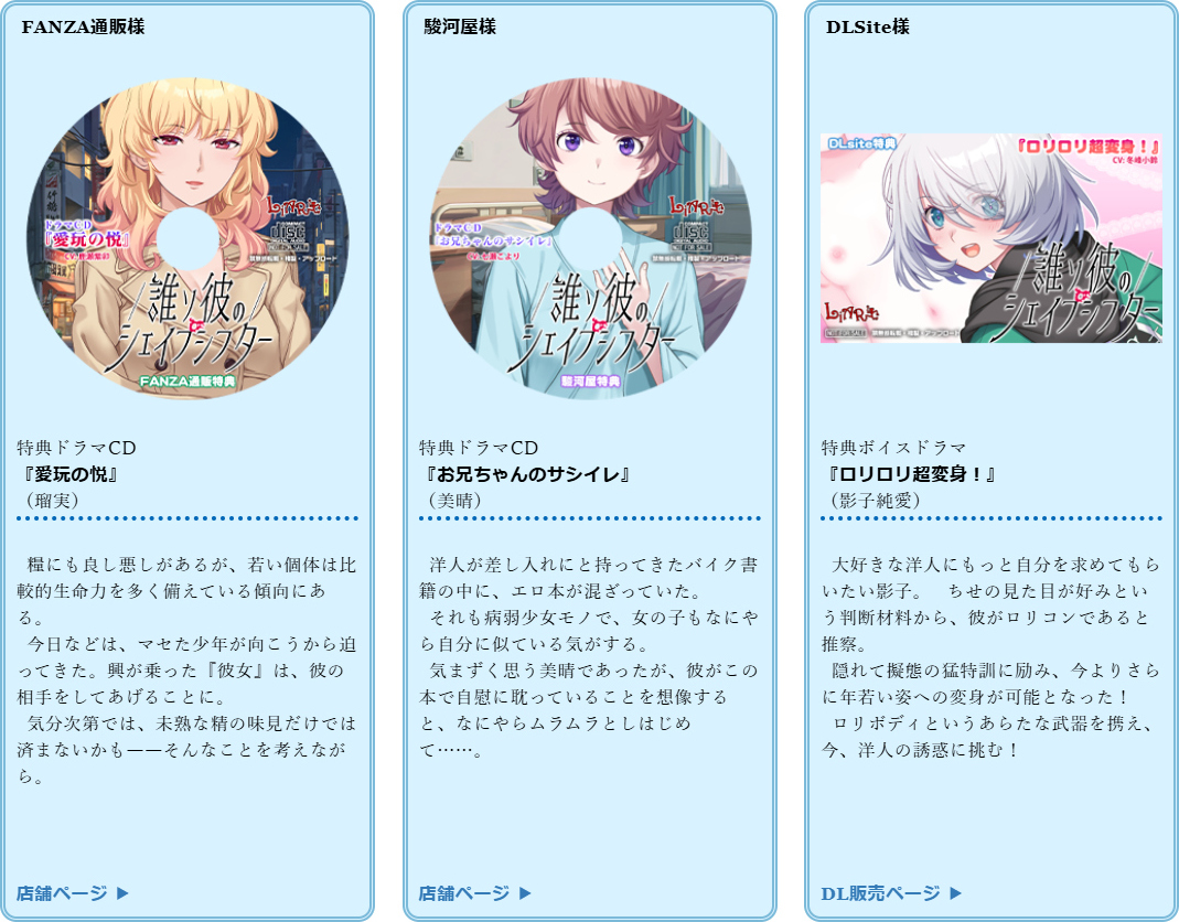 原画は主に漫画・イラストで活躍中の瀬菜モナコ氏。心の奥にいろいろ秘めたり、そもそも人間じゃなかったりする難しいキャラクターたちを、素晴らしいデザインと原画で描き出す。企画・シナリオは由又かつお氏。得意の伝奇的なモチーフが今回も発揮され、Liar-softらしい印象的なストーリーを紡いでいく。シナリオゲー好きなら絶対チェックの注目作だ。