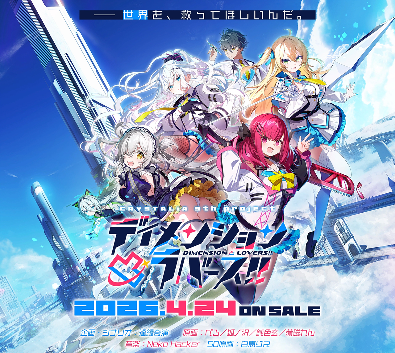 熱いバトルと恋愛の掛け合わせが大人気なブランド・CRYSTALiA。その最新作『ディメンション凸ラバース!!』は、ラノベでも活躍中の人気作家・逢縁奇演氏を企画・シナリオに迎えた意欲作だ。