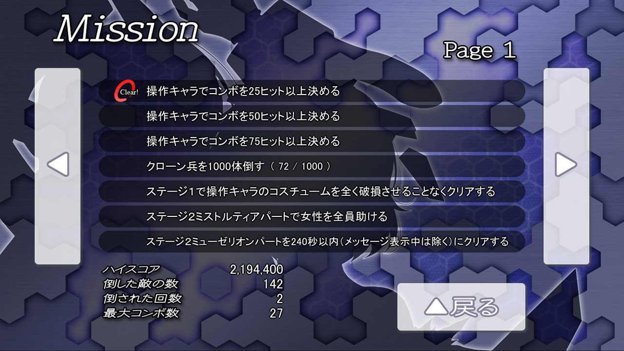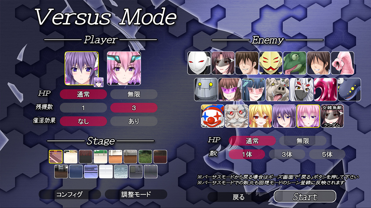 ▲ゲーム設定が充実しているだけでなく、バーサスモードやゲーム内ミッションの達成などのやり込み要素も満載。エロだけでなく、アクションゲームとしての完成度の高さにも驚くばかり!!