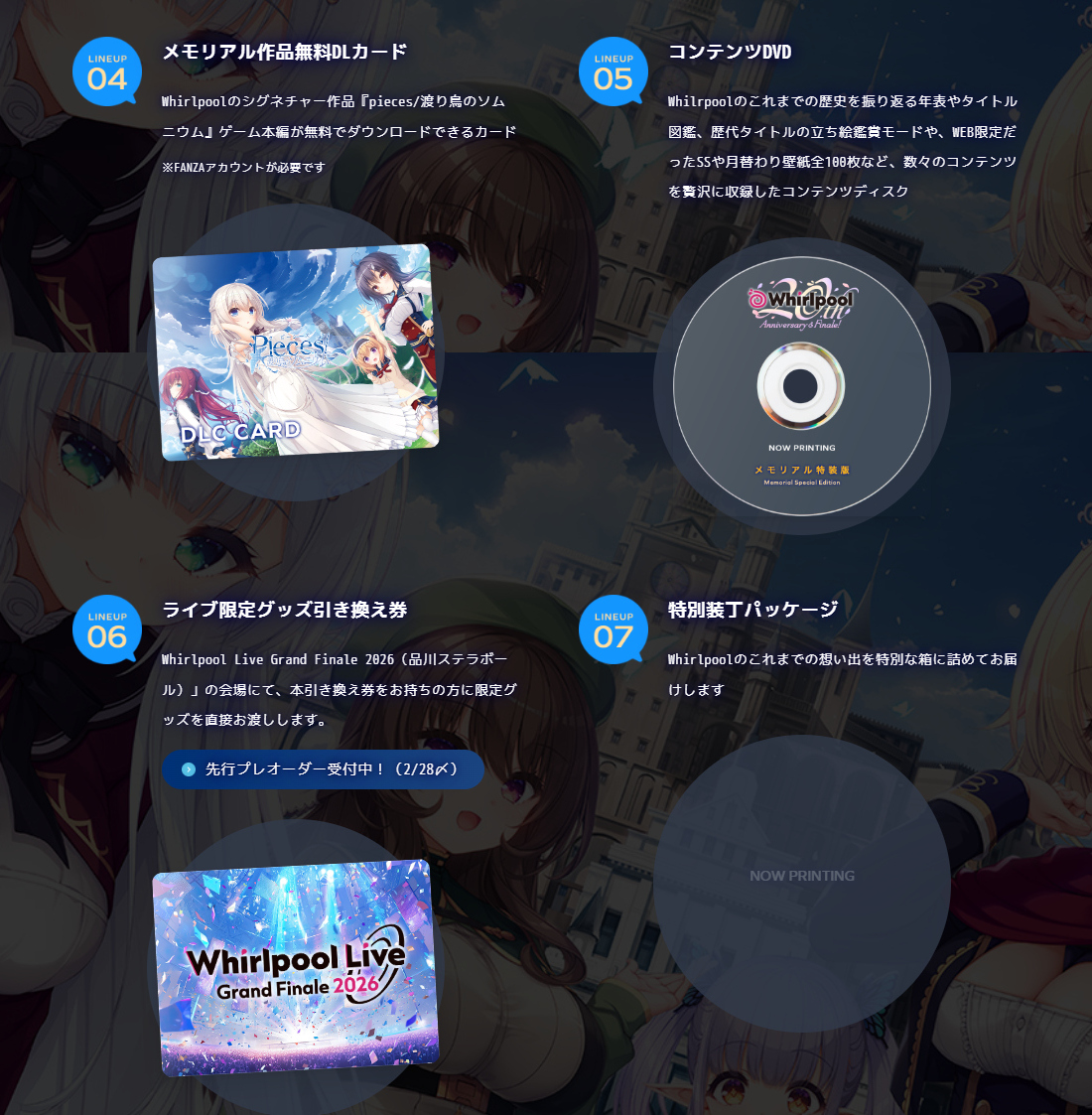 7月12日(日)には20周年とブランドフィナーレを記念したラストライブ『Whirlpool Live:Grand Finale 2026』も開催される予定。チケットの先行プレオーダーも2月28日(土)まで受付中なので、ファンは要チェックだ!!