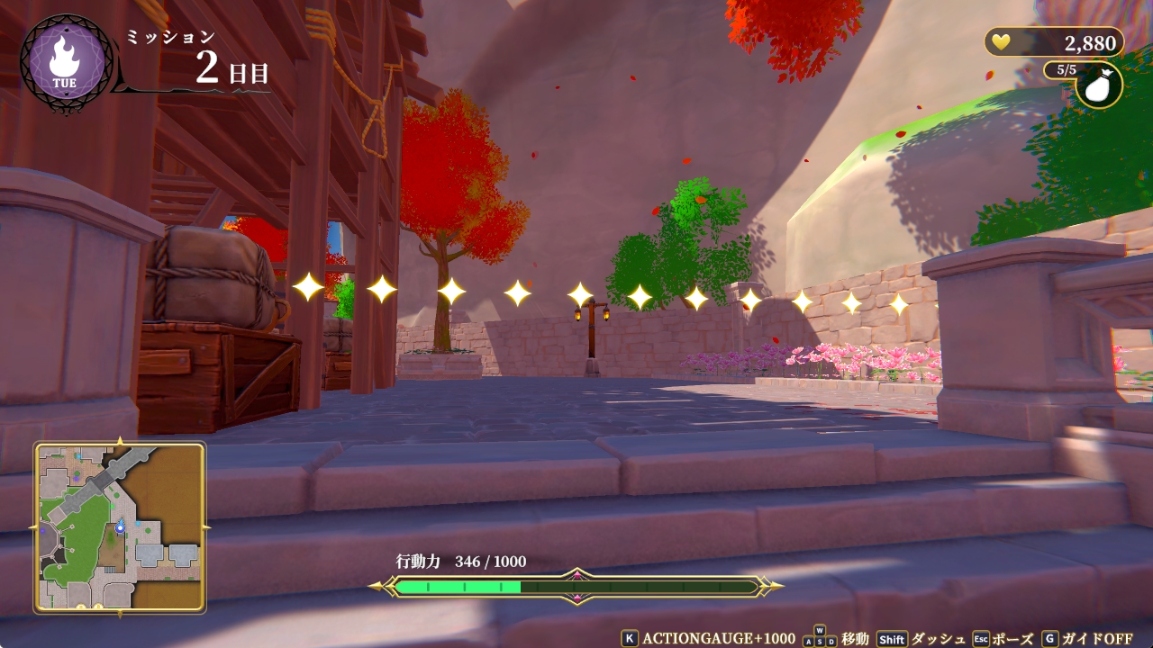 行動力が増えてきたら、次は午前の開始地点の増設を目指したい。MAP移動中にキラキラしたラインを越えると、新たな開始地点として登録される。行動力の節約には必須なので、以下のMAPを参考に向かおう。