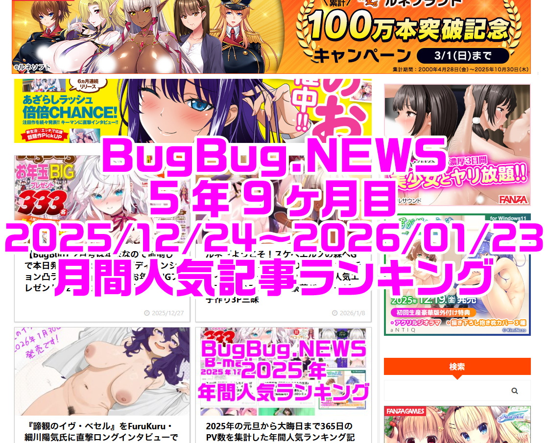 BugBugで連載していた大ヒットヌキゲー原作コミカライズ単行本化の特報記事が注目を集める!! BugBug.NEWS 5年4ヶ月目の人気記事ランキング