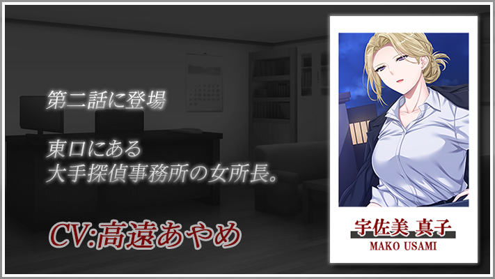 本作の見どころは、寂れた場末の街の探偵事務所を中心に繰り広げられる、ちょっとアダルトなヒューマンドラマ。登場人物は基本的に、うさんくさかったりいかがわしかったりする、日の当たらない社会で蠢く人たち。一見普通に見える人も、実はみんな一癖も二癖も抱えている妖しい人物ばかりだ。