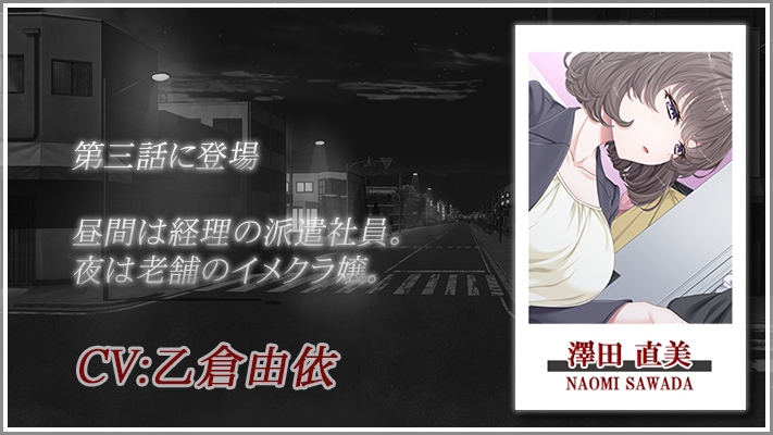 ▲登場するキャラクターは色気ムンムンの人妻からメスガキなパパ活女子まで、バリエーション豊か。彼女たちのいけない秘密を探り出せ!!