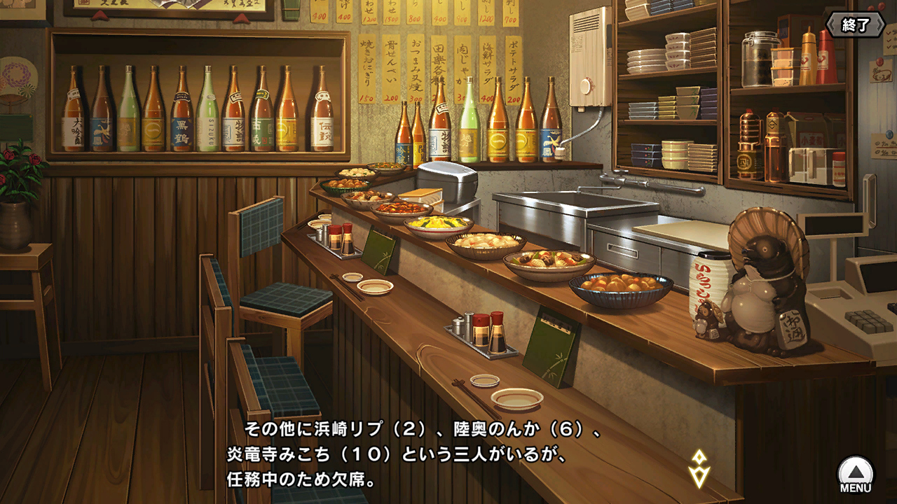 ▲メニューの裏のアジト画面。バレンタインだし最近目立ててないしで応援の意味も込めて、ふうま家にチョコを持ってきたアスカ……の背後に迫る刺客