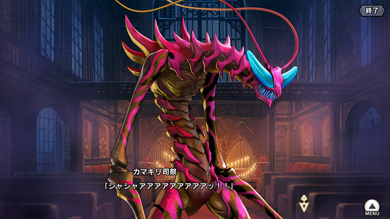 ▲アミダハラにあるネオアースの教会に踏み込んだところ、例によって司祭が怪物化して襲ってきた。司祭は黒い霧に覆われて狂暴化したのだが、この霧に寄生虫ならぬ夢生蟲が混じっていて舞華とのんかが寄生(夢生?)されたようだ。司祭は殺すしかなく、信徒も全員焼身自殺したため、カルトが何と繋がっているのか情報が追えない。「カマキリ司祭」という名前は特撮の敵っぽくて好き