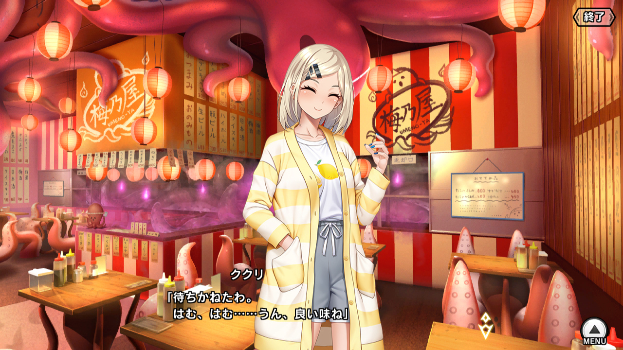 ▲なんでもありのブレインフレーヤーの中でも特になんでもありのククリは、梅乃屋に立体映像を送ってタコ焼きを楽しむ。タコ焼きは本体の元に転移させて実際に食っているらしい。そういえばラティクールも食事に興味を持っていたし、文化として廃れただけで食事自体には惹かれるものがあるのかもしれない