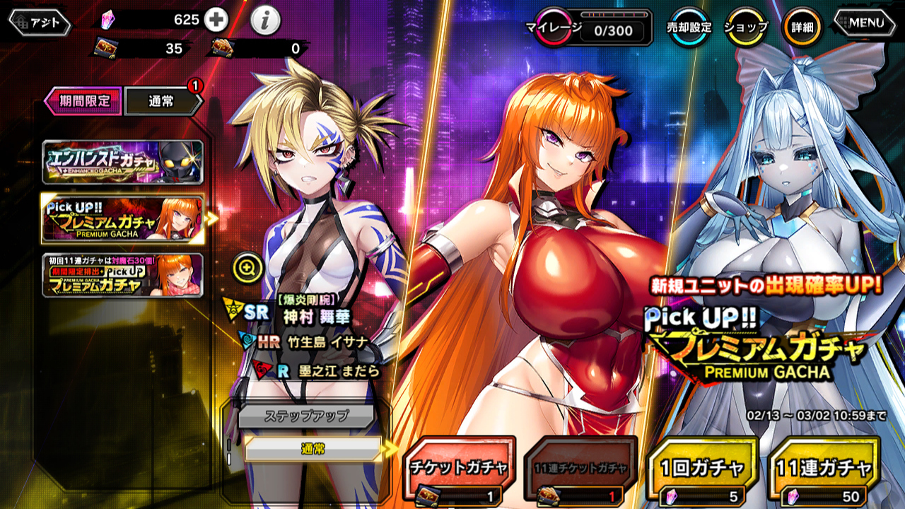 ▲パワーレディ、ベルゼビュートのどっちかは欲しかったけど、出ないものは仕方がない。一応、SR【対魔忍】龍前トモコは手に入った。120連でNEW1枚だけ……