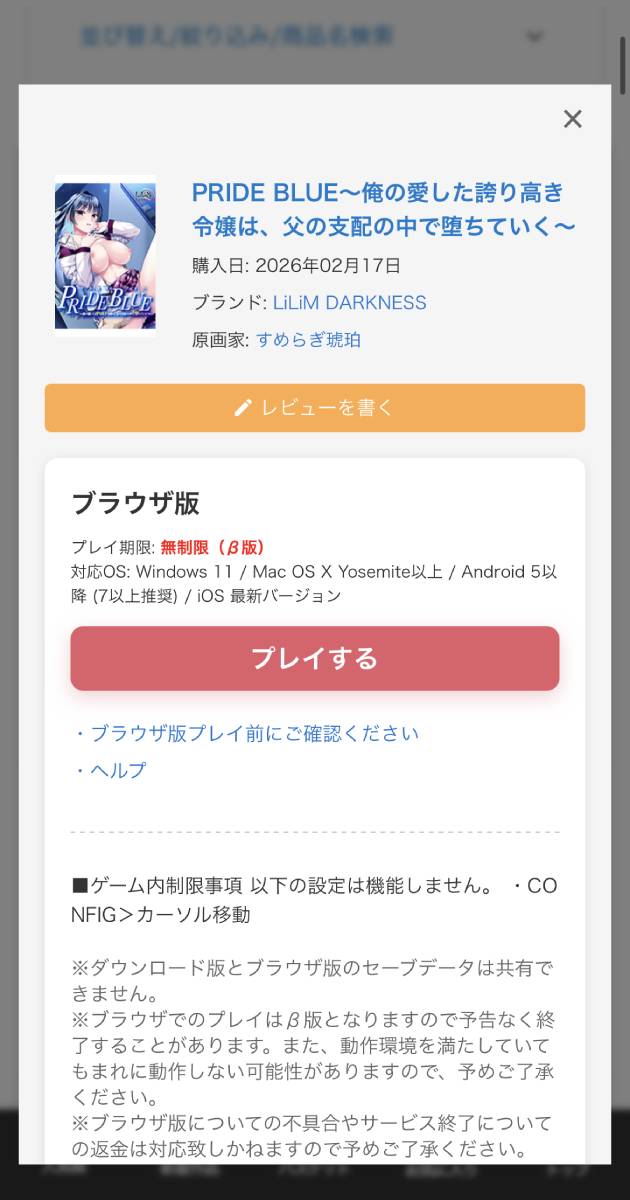 最後にブラウザ版の購入手順及びプレイ開始までの流れを説明していこう。事前準備はFANZA GAMESのユーザー登録のみ。その後はクレジットカードで作品を購入すればすぐにでもプレイできるぞ。実際に『PRIDE BLUE〜俺の愛した誇り高き令嬢は、父の支配の中で堕ちていく〜』を購入していこう。画像付きで手順を書いているので、ぜひ参考にしてほしい。