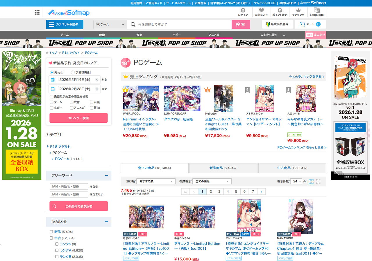 PCゲーム 新品商品・月間・予約商品(集計期間:1月20日~2月18日)