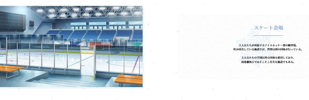 ▲主人公たちが通う学園やスケート会場などは、かなり近代的な建物のようだ