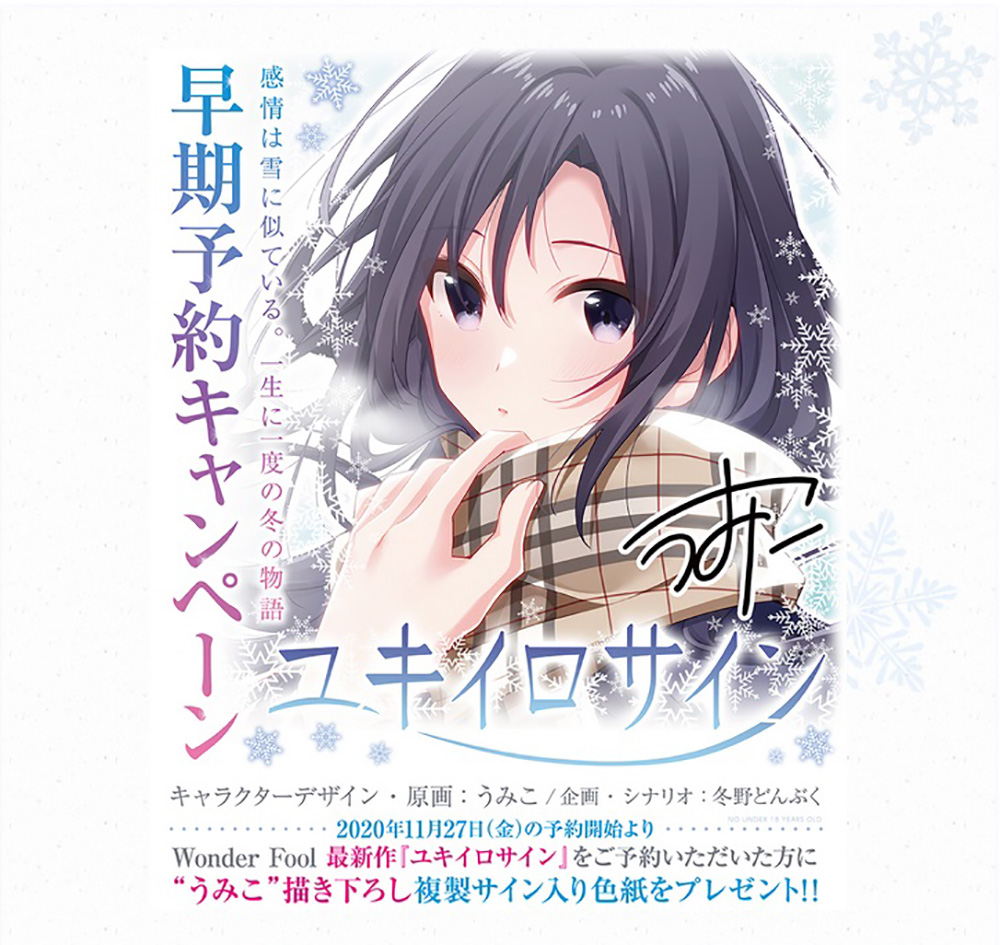 Wonder Foolの最新作の情報が公開されたぞ!! 魔王ヒロインをアイドルとして育成した前作『まおかつ!』から一転、今回お披露目された『ユキイロサイン』は、現代日本を舞台にした学生たちが主役の青春群像劇とのこと。雪が降り積もり一面銀世界となった雪国の田舎町を舞台にしたひと冬の物語は、その世界観だけで感動作の雰囲気がひしひしと伝わってくる。2021年3月の発売を前に、今回は公開されたばかりの作品情報を紹介していくぞ。