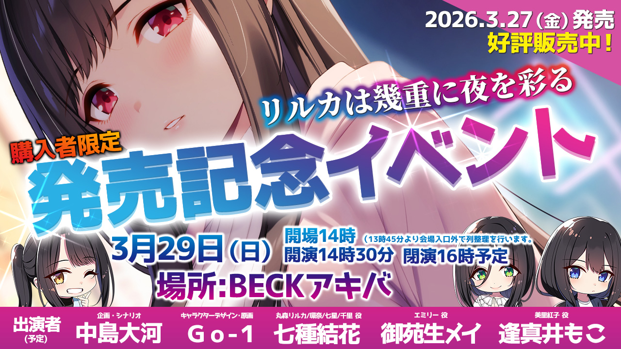 ▲3月27日にリリースされた『リルカは幾重に夜を彩る』(シルキーズプラス)で中島大河氏は企画・シナリオを担当。3月29日に秋葉原で開催された発売記念イベントにも参加し、会場を盛り上げてくれたのだ