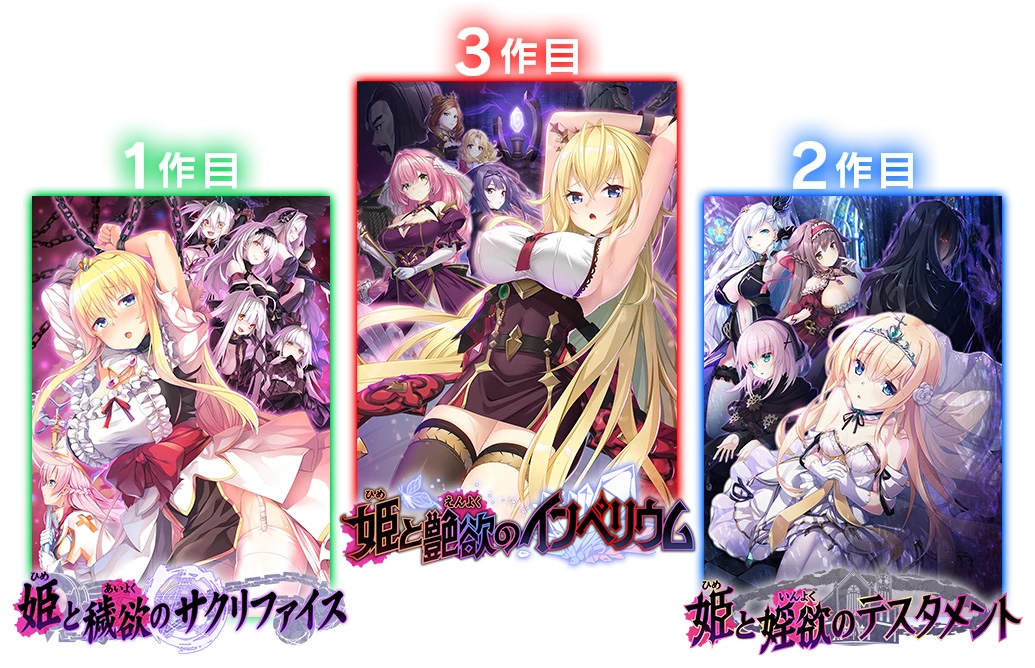 そして本作の発売と合わせて、過去の姫様調教モノである『姫と穢欲のサクリファイス』『姫と婬欲のテスタメント』も含めた『姫様調教トリプルパック』も発売される。