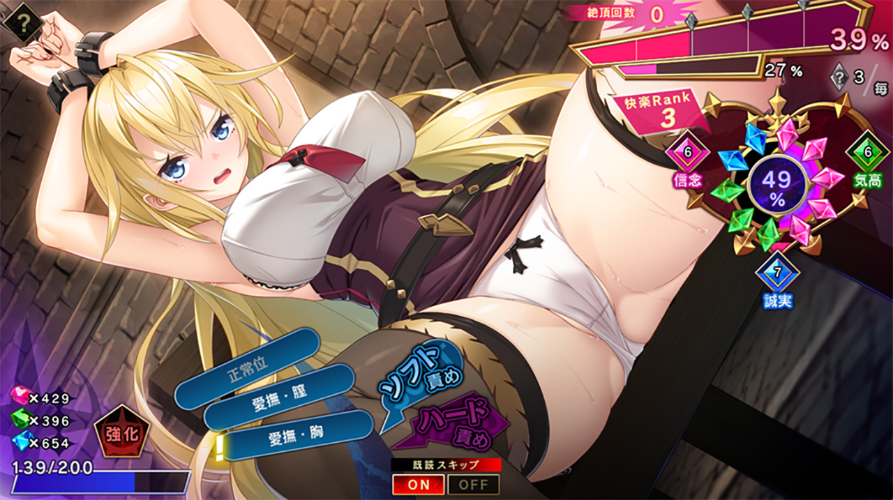 調教を進めると彼女の快楽のランクが上がり、抵抗が弱くなって蕩けきった表情で喘いでくれるぞ。